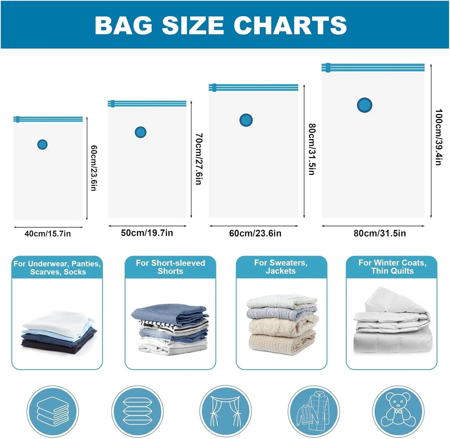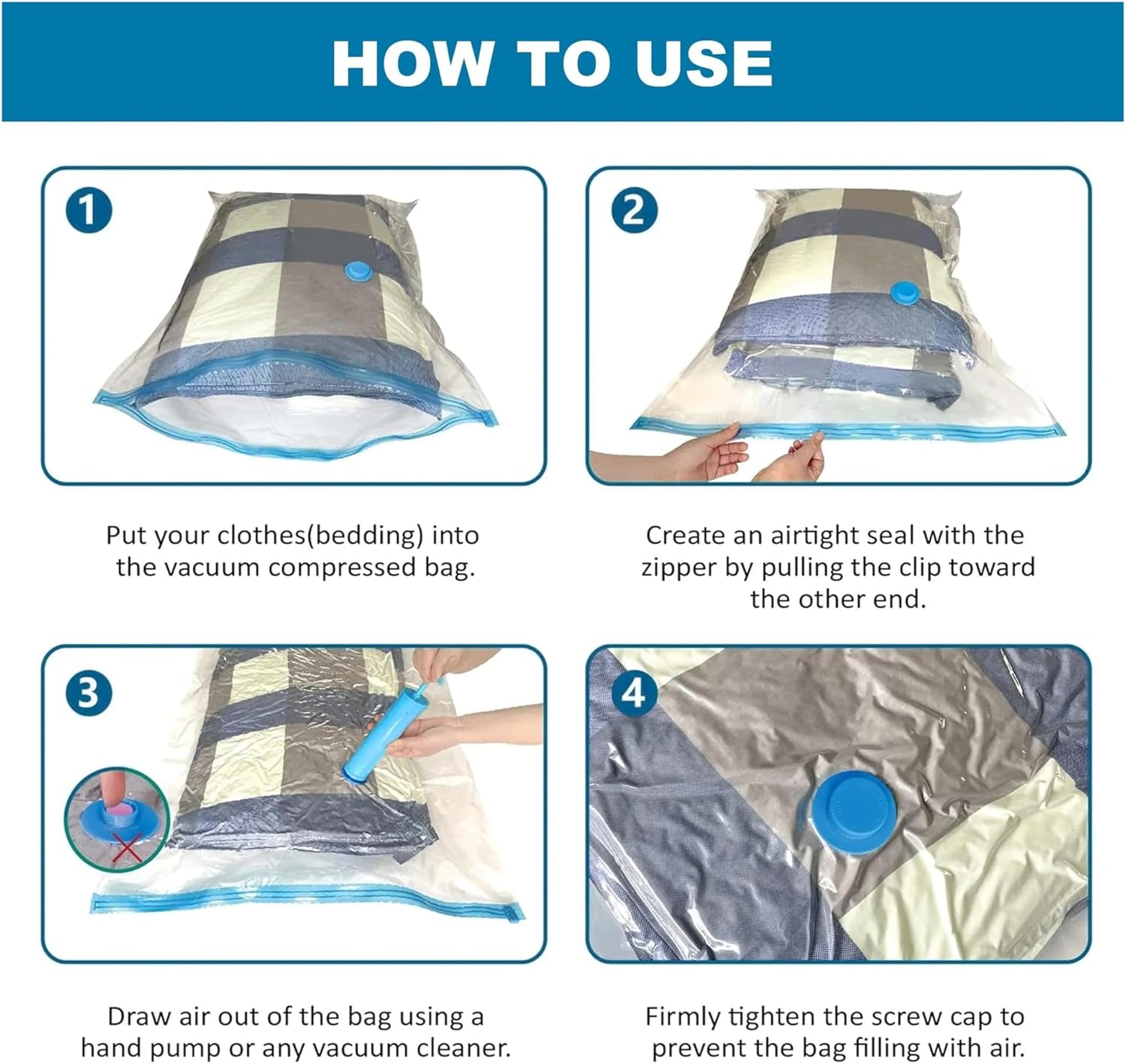 4pcs Vacuum Compression Storage Bag, Sealed Clothing Storage Bag, Household Space Saving Organizer, Excluding Manual PumpMaterial : PVC