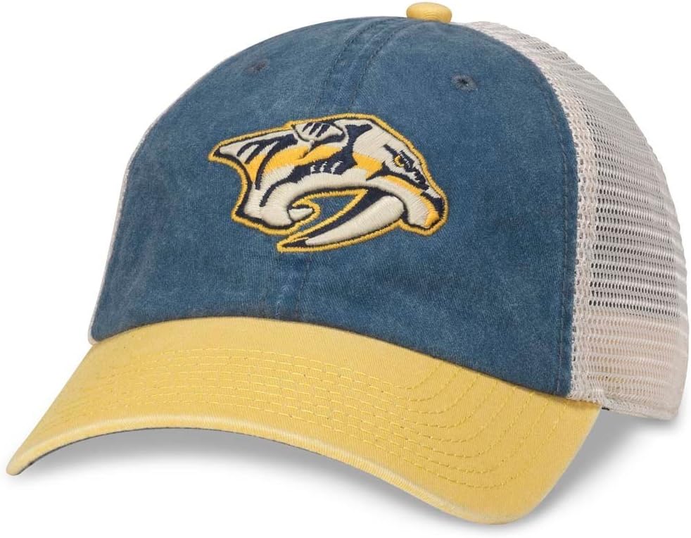 This American Needle sports cap features a NHL team. This mens hat is constructed with premium pigment washed twill. The body of the baseball hat consists of a soft structured crown and soft mesh sides. Details on fitted hat include a curved brim with a self adjustable fabric strap. Through their continued emphasis on leadership, craftsmanship, individuality and the heritage of their trade, American Needle proudly offers the finest collection of headwear out there.