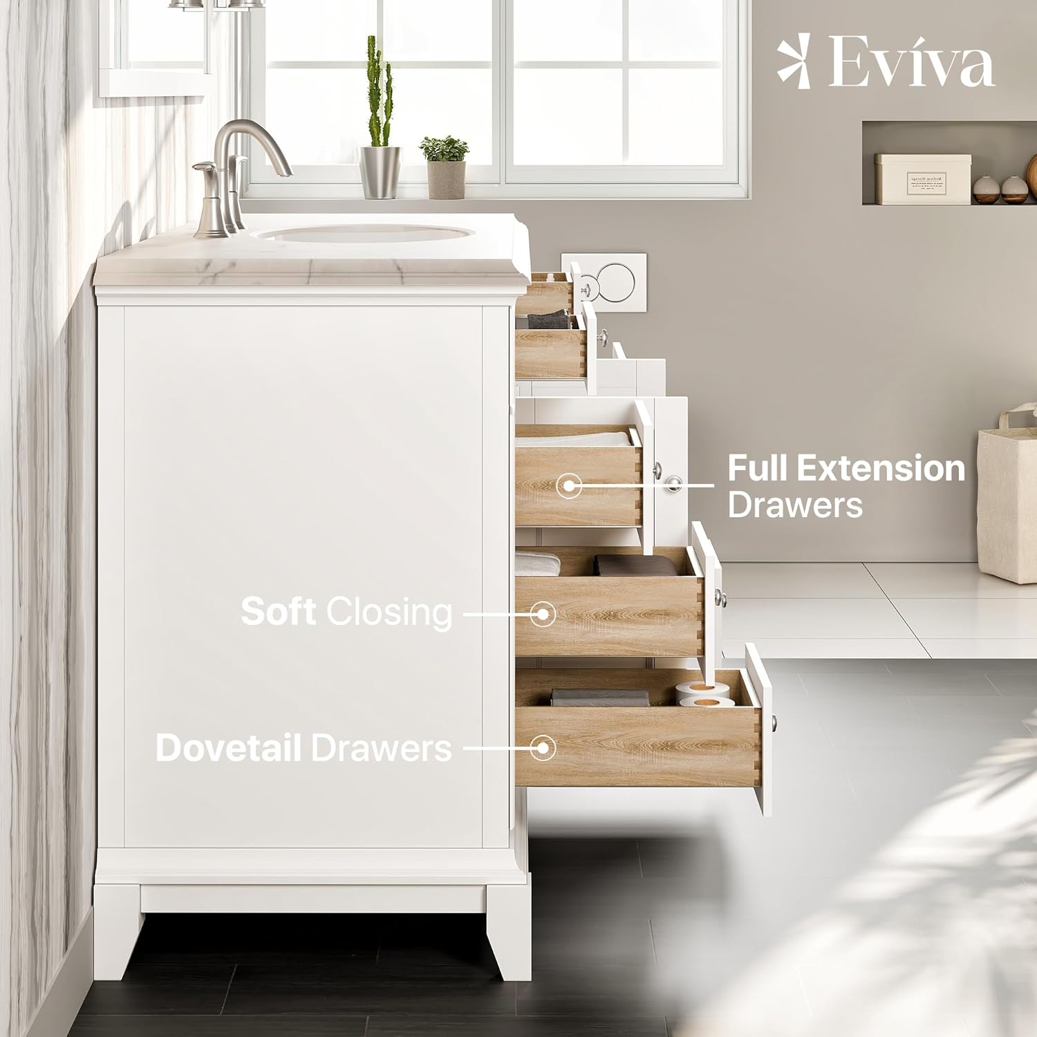 | Model Name | Eviva Elite Stamford 42" White Solid Wood Bathroom Vanity Set with Double OG White Carrera Marble Top & White Undermount Porcelain Sink |