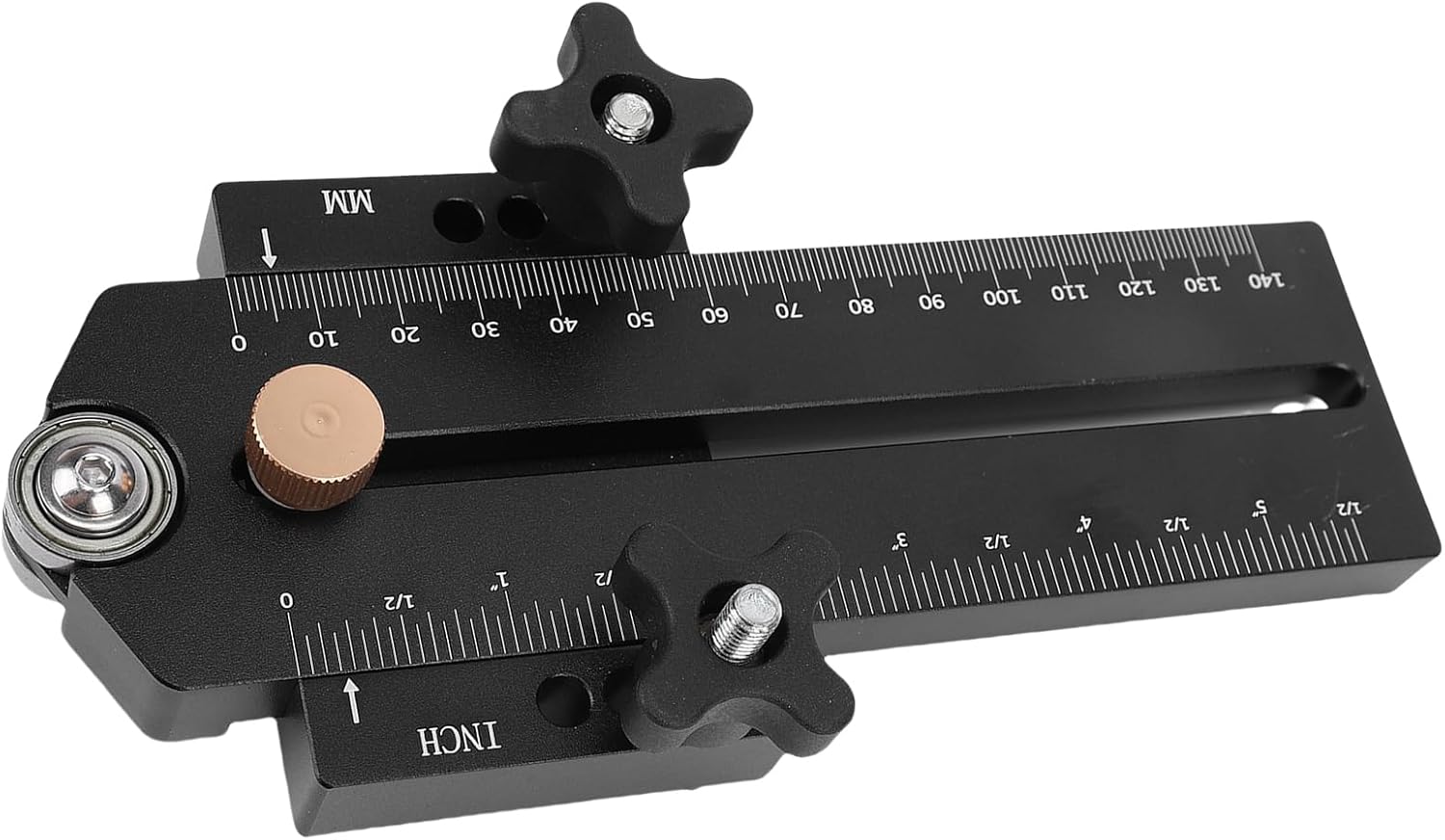 Specification: Item Type: Thin Jig Material: Aluminum Alloy Weight: Approx. 505.00g / 17.81oz Product Size: Approx. 180x80mm / 7.09x3.15in Adjustable Range: Approx. 0 to 140mm / 0 to 5.51in Color: Black packing list: 1 x Thin Jig 2 x Slider 4 x Accessories