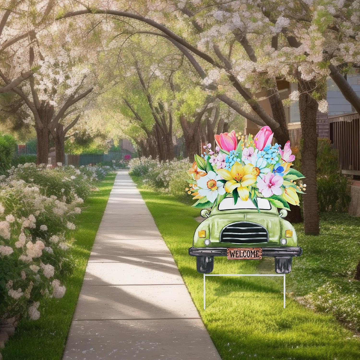Features: Rustic aesthetic: The rustic metal look matches various outdoor styles, from cottage gardens to lawns. Blends naturally without clashing with existing decor. Separable flower and truck pieces: Arrange flower and truck together or apart. Apply the truck as a focal point, and flower to paths, maximizing decor flexibility for small and big spaces. Specifications: Material: metal Main color: green Size: 32.9 x 58 cm/ 13 x 22.8 inches Package includes: 1 x Spring outdoor decoration Notes: Manual measurement, please allow slight errors on size. The color may exist a slight difference due to different screen displays