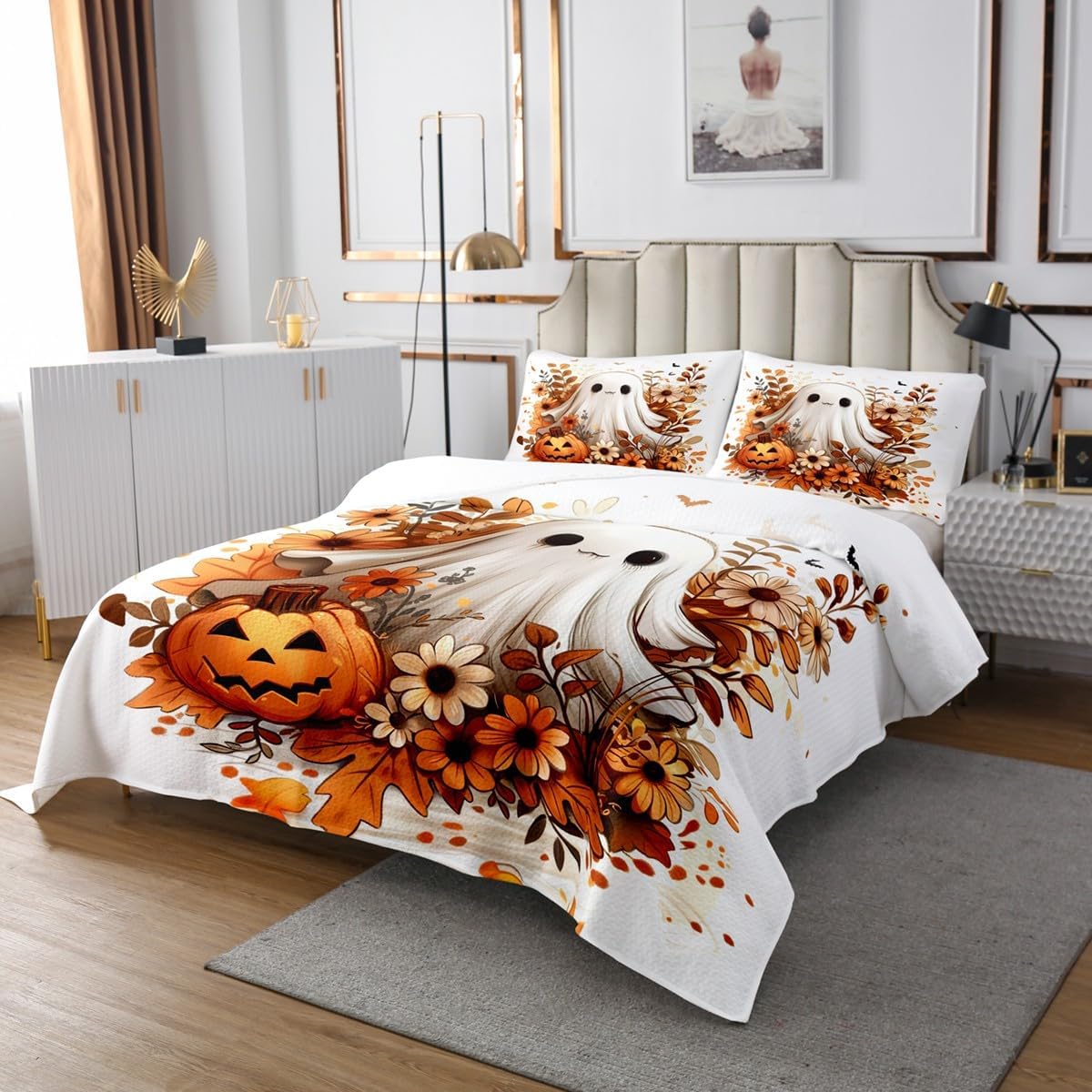 Best blessings: Makeover your bedrooms every season with our bedspread sets. Perfect item for your room,girls boys youth room,master bedroom. Size information: 1 Twin size quilted bedspread 68" W X 90" L and 1 quilted pillow sham 30" W X 20" L . 1 Queen size quilted bedspread 90" W X 90" L and 2 quilted pillow shams 30" W X 20" L . 1 King size quilted bedspread 104" W X 90" L and 2 quilted pillow shams 36" W X 20" L . Useful and practical: A luxurious product for homes,dorm rooms,hotels,guest rooms.Practical to use for being polyester,feels like cotton which is super soft and breathable. No chemicals used,no dye substance harming the health of you or your family. Unique design: Vivid colors won't fade thanks to new 3d digital printing methods.These unique designs match well with various color palettes of your rugs,curtains,headboard,furniture,and all other decor accessories. Personalized: As manufacturers of digital printed home textiles,we follow current trends and bring you the latest home fashion. Note: The bedspread and pillow shams are printed on the front side only,the back of them are white colored.Comforter is not included in the set.