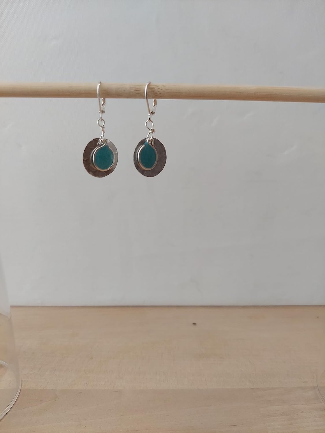 earrings are made from denim blue resin and hammered aluminum discs.Lightweight silvertone app 3/4 inch.Lever backs are nickel free for sensitive ears.Made in the USA.MAKE SURE THEY ARE AUTHENTIC AND SAY BEADS BY BETTINA