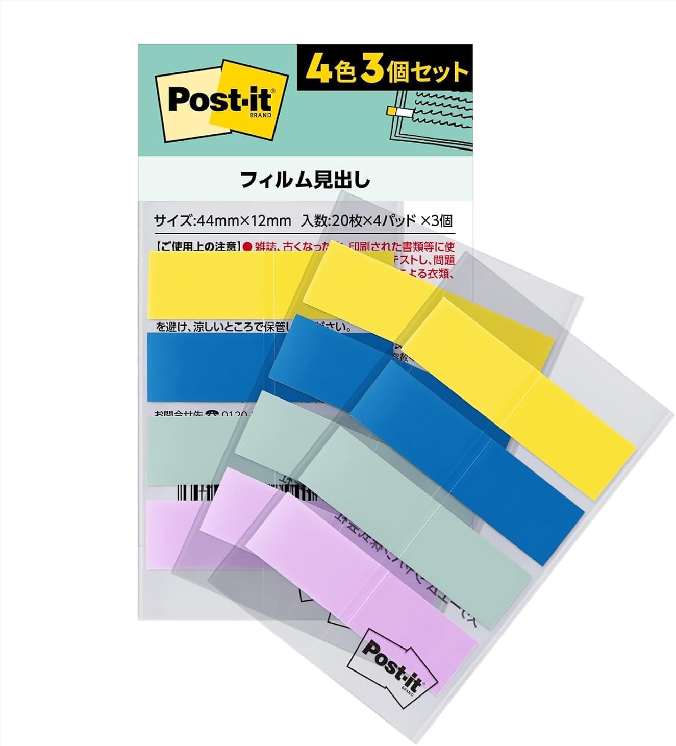 Post-it "Color your story" film has been renewed. Durable and resistant film type notes. With a large number of colors, it is convenient for sorting, color coding, and heading pages such as books and documents. It can be firmly applied and removed cleanly. Comes in a case that can be easily removed one at a time, making it convenient to carry. ●Use permanent pen, water-based pen, ballpoint pen, pencil. ● It becomes transparent when applied, so it will not cover the letters or images below. Easy to use for study, notebooks, and documents. ● Base film uses 51% or more recycled plastic and case made of recycled plastic.
