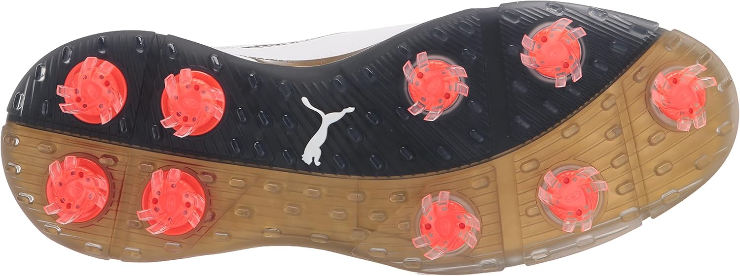 Built to the exacting standards of some of the world's best golfers, these shoes are born out of revolutionary thinking and innovative design. The ADAPT foam in the heel provides stable cushioning and gives unrivalled ground feel and energy return. The tongue wraps from the medial side, meanwhile, ensure a perfect fit no matter your foot shape. Next time you're on the course, these are the shoes you'll need to conquer it in style.CMEVA: PUMA's compression-moulded EVA material for lightweight performance. Low boot with moulded comfort collar. ADAPTIVE FIT SYSTEM with dual-layer decoupled collar construction on upper. ADAPT foam with EVA cushioning for stability. Dual Density Tornado studs on outsole. One-piece ADAPT-WRAP tongue for medial support. Four PWRADAPT pods in heel. Debossed PUMA Formstrip at lateral sides. PUMA Wordmark on tongue. PUMA Cat Logo on outsole.
