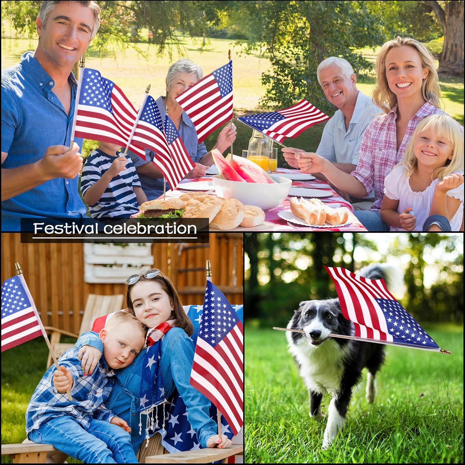 Features: Spearhead design: These American flags for outside with a safe spearhead design, spear tip polished fine, rounded corners smooth, will not scratch your hand easily. You can use with confidence. Bring unforgettable memories: These outdoor American flags are suitable for decorating your yard, garden, home, office, school and other places you like, attractive and beautiful, they will leave unforgettable holiday memories for you. Specifications: Material: polyester, wood Color: red, blue, white Flags: approx. 8 x 12 inches Sticks: approx. 16.3 inches in length Package includes: 300 x US stick flags Notes: Manual measurement, please allow slight errors on size. The color may exist a slight difference due to different screen displays