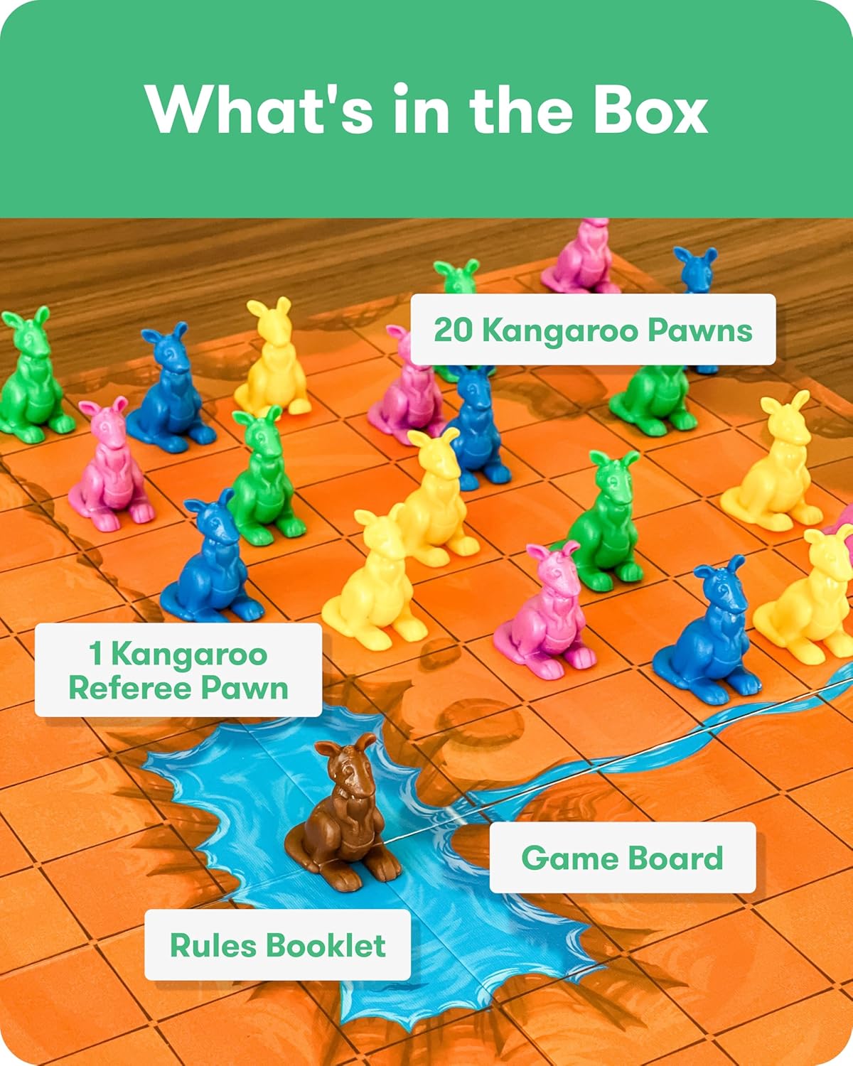 | Included Components | 1 Game Board, 1 Plastic Kangaroo Referee Pawn, 20 Plastic Kangaroo Pawns |