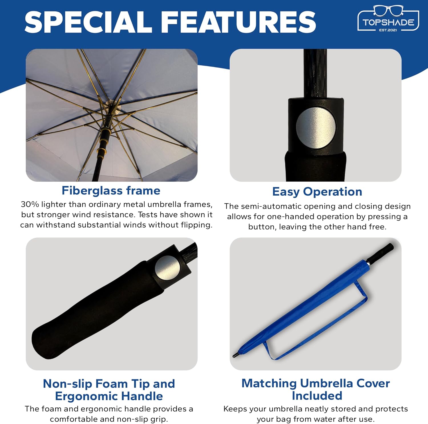 | Special Features | Windproof, Automatic Open, Vented Canopy, UV Protection, Waterproof |